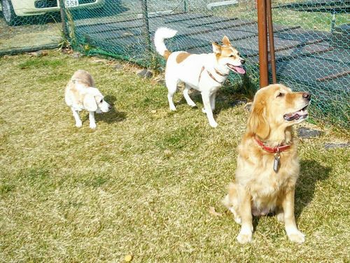 子供に人気の小さなロフト付ログハウスだけれど、ドッグランは併設してないけれど、ワンちゃんは皆大喜びで走り回っています。
