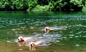 玄関を出て目の前の四万川で遊んだり川向こうの広場でドッグランも可能です(他のお客様がいない時のみ)。