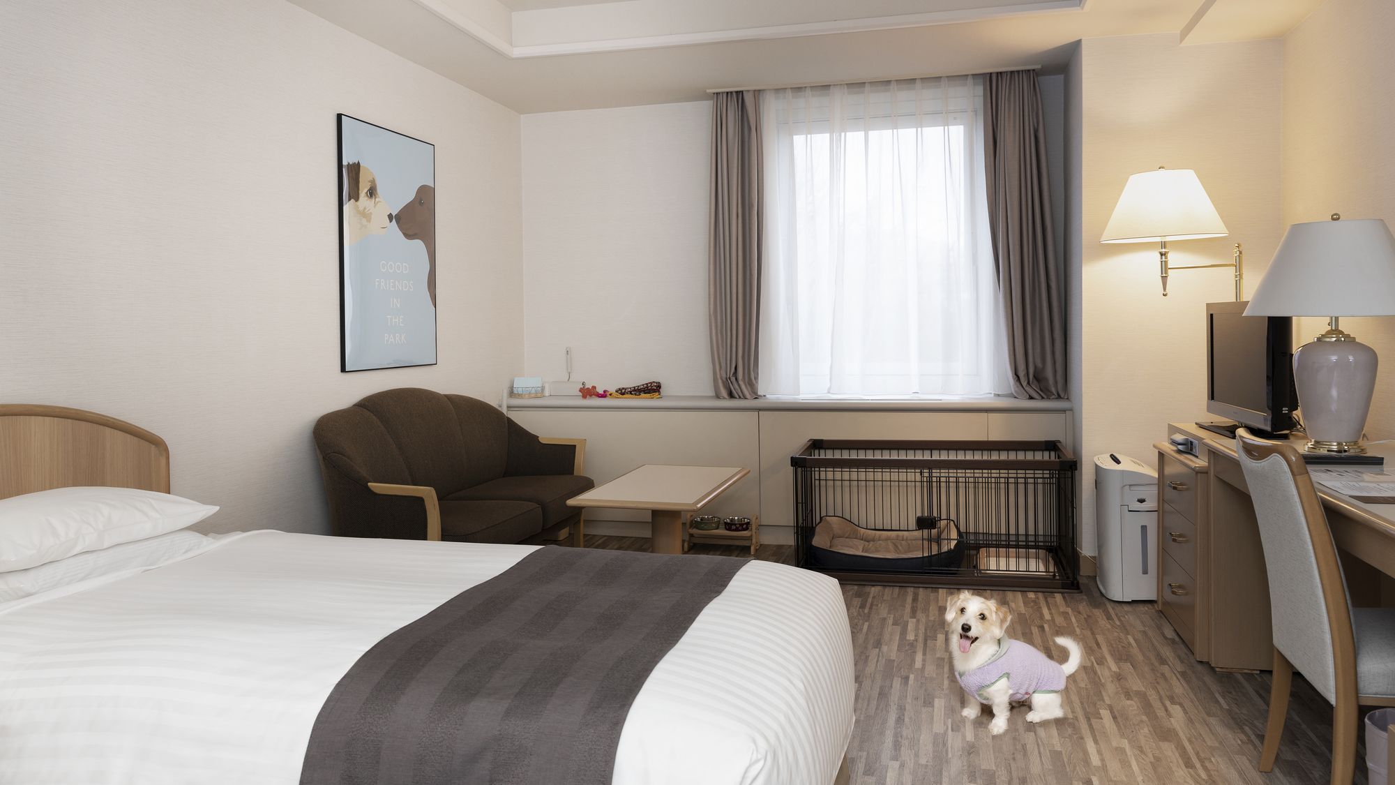 愛犬と一緒に過ごせる、ワンちゃんルームがOPENしました。この機会に愛犬との楽しい旅をサロマ湖鶴雅リゾートでお過ごし下さい。